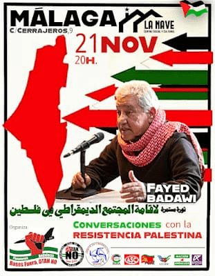 En su gira por Andalucía, el militante Fayed Badawi, ex portavoz del Frente Popular para la Liberación de Palestina FPLP, ofrecerá varias charlas sobre la resistencia del pueblo palestino frente a la ocupación colonial sionista.