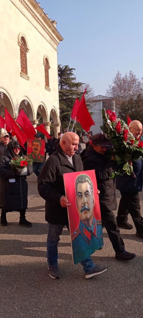 En diciembre (21.12.2025), en las ciudades georgianas de Gori y Zestafoni, el Partido Comunista Unificado de Georgia (PCUG, presidido por el camarada Teimuraz Samnidze), junto con la sociedad de seguidores de las ideas de I.V. Stalin, llevaron a cabo mítines y actos en honor al 146º aniversario de su nacimiento.