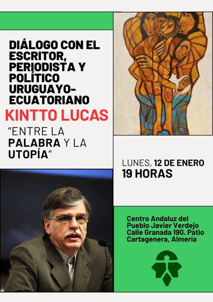 Ayer 12 de enero se celebró en el CAP Javier Verdejo de Almería un acto titulado «Diálogos entre la palabra y la utopía» con el escritor, periodista y político uruguayo-ecuatoriano Kintto Lucas.