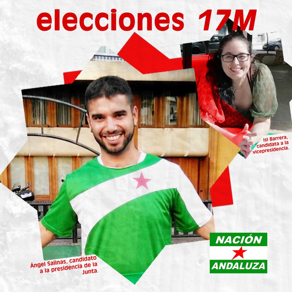 En los próximos comicios andaluces Nación Andaluza presentará candidatura en todas las circunscripciones de Andalucía con el lema Sembrado Revolución Andaluza según ha hecho público. El candidato a la presidencia de la Junta es el cordobés Ángel Salinas y para la vicepresidencia presentan a la onubense Isi Barrera.
